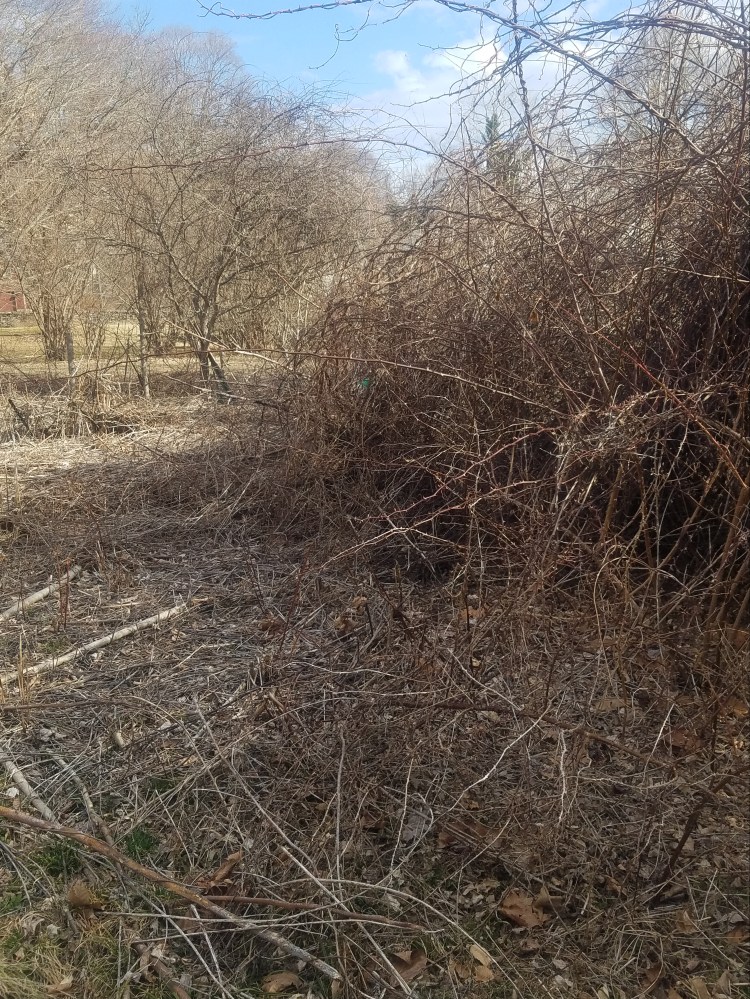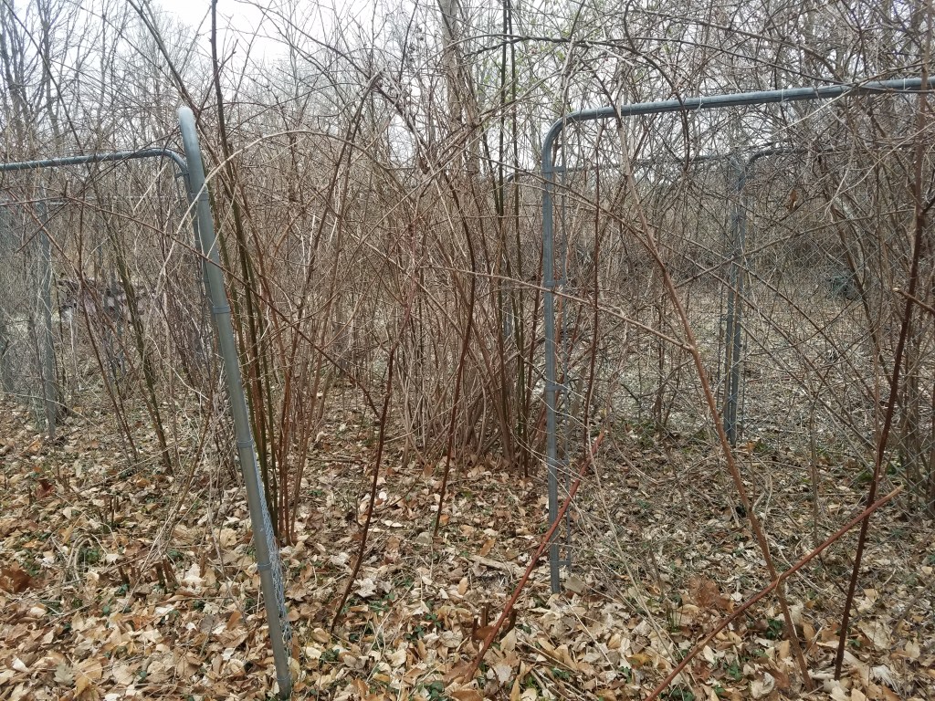 Blueberries neglected and mostly dead. Netting and a chain link fence at one time kept the birds out. Didn’t keep the wild blackberries out.
