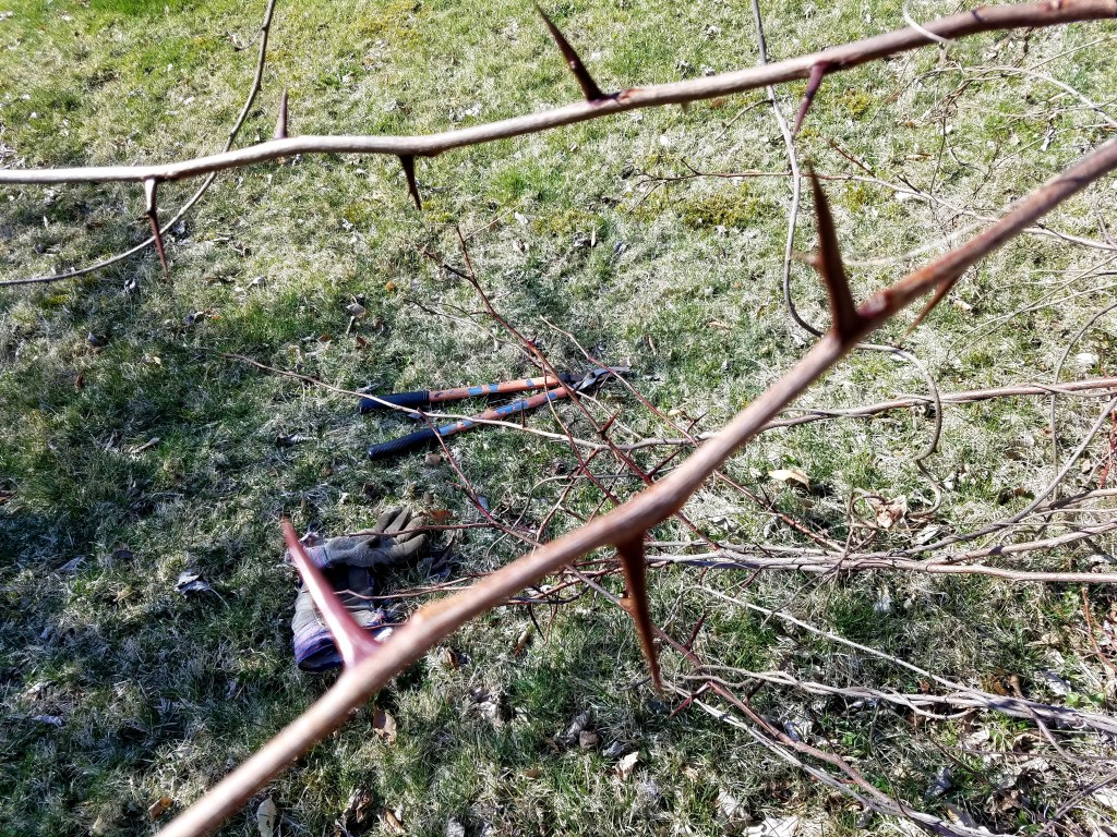 On the other side Blackberry Brambles cut down and raked